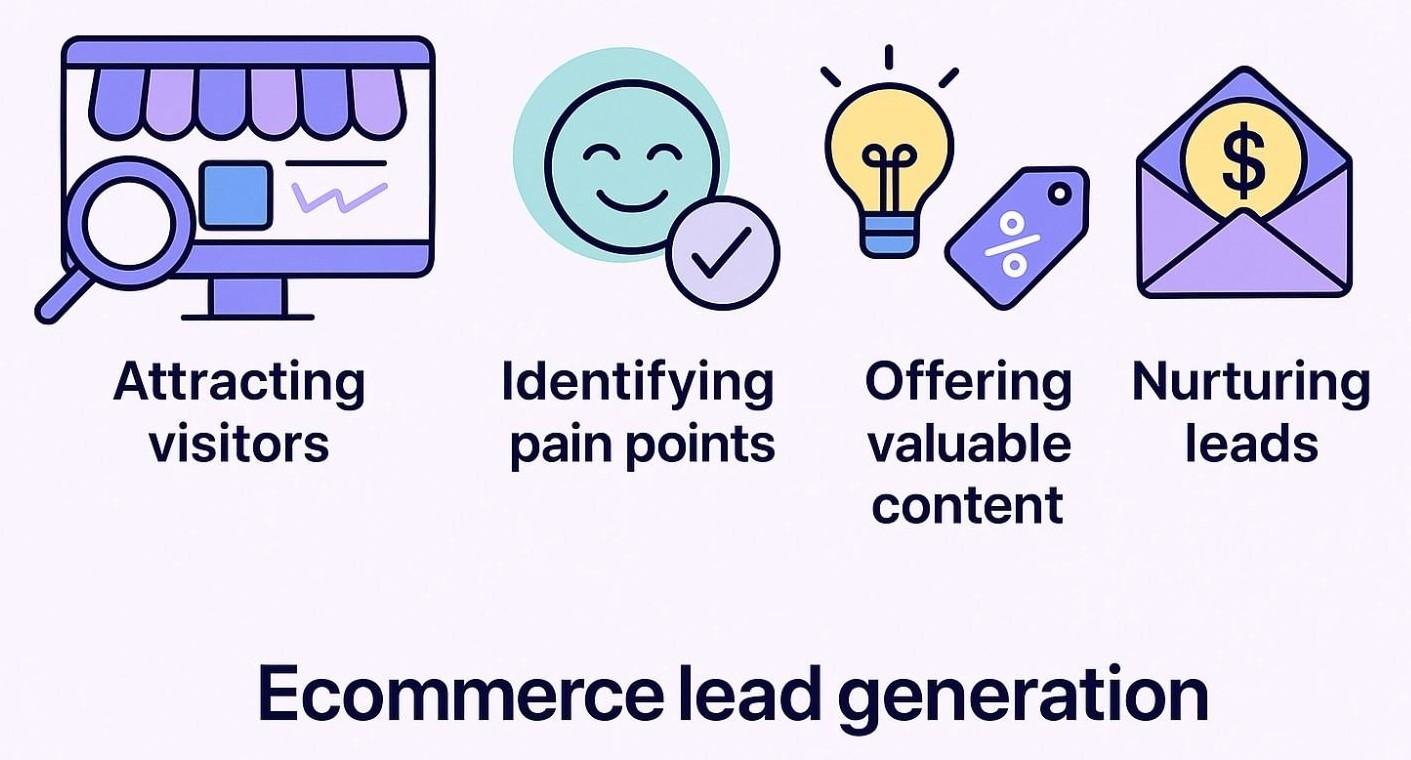 An effective ecommerce lead generation strategy focuses on attracting your target audience, understanding their pain points, and offering something valuable in return—like a discount, helpful content, or early access.
