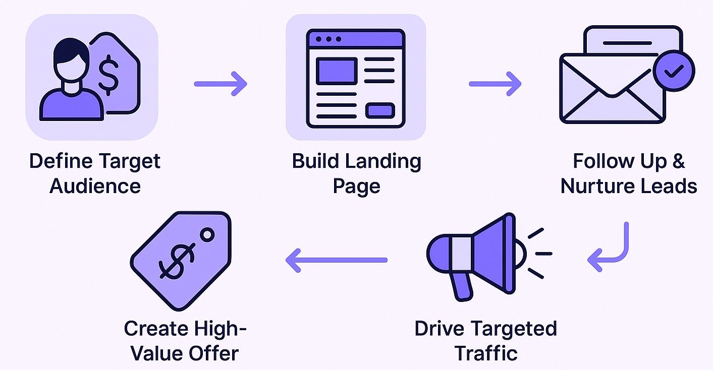 Getting more leads isn’t about luck—it’s about having a process that works. Here’s a five-step plan to build and run a lead generation strategy that actually delivers results: