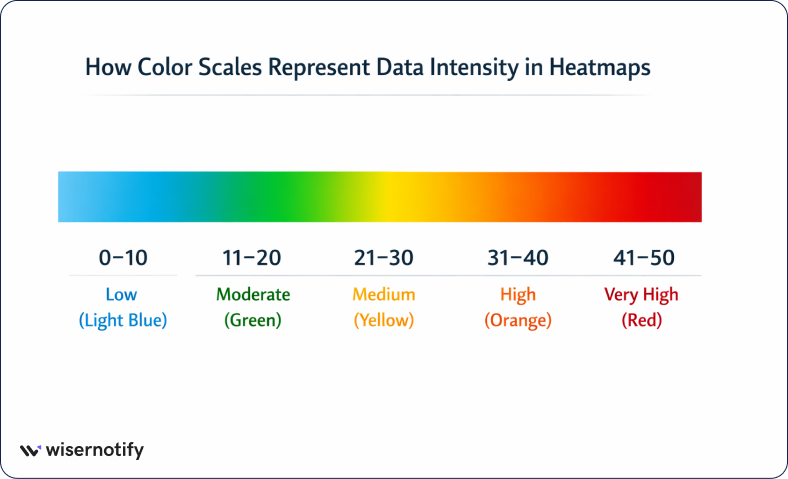 Heatmaps use color intensity to show data patterns. By interpreting colors correctly, analysts can quickly identify trends, clusters, and outliers in large datasets.