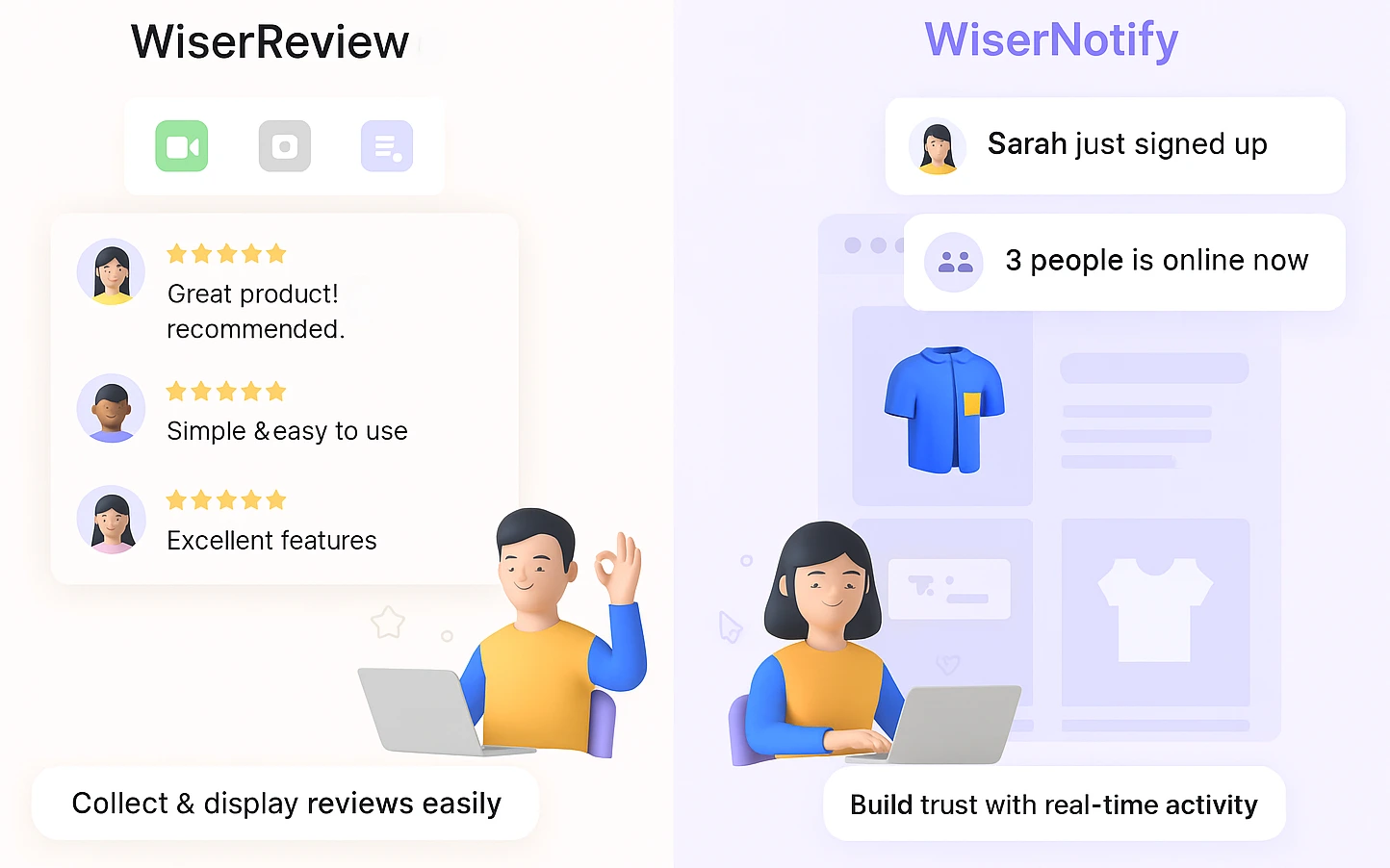 WiserNotify is for businesses that want to show activity and build instant trust. It doesn’t collect reviews. Instead, it helps you display your existing reviews using live social proof popups and FOMO widgets.