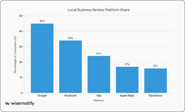 13. 45% of consumers leave local business reviews on Google.