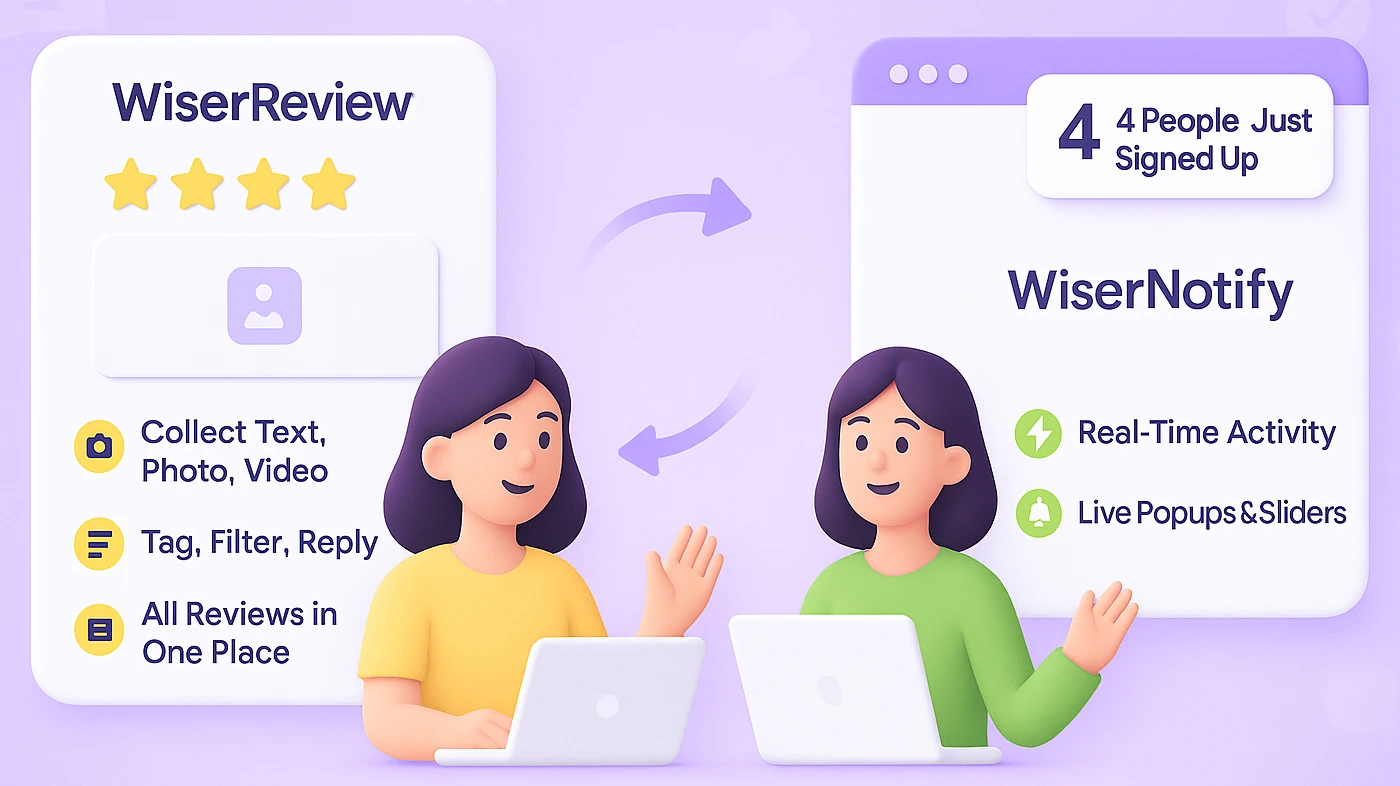 WiserNotify doesn’t collect reviews like Reviewzie. Instead, it helps you display reviews in smart, real-time ways to build trust and drive action.