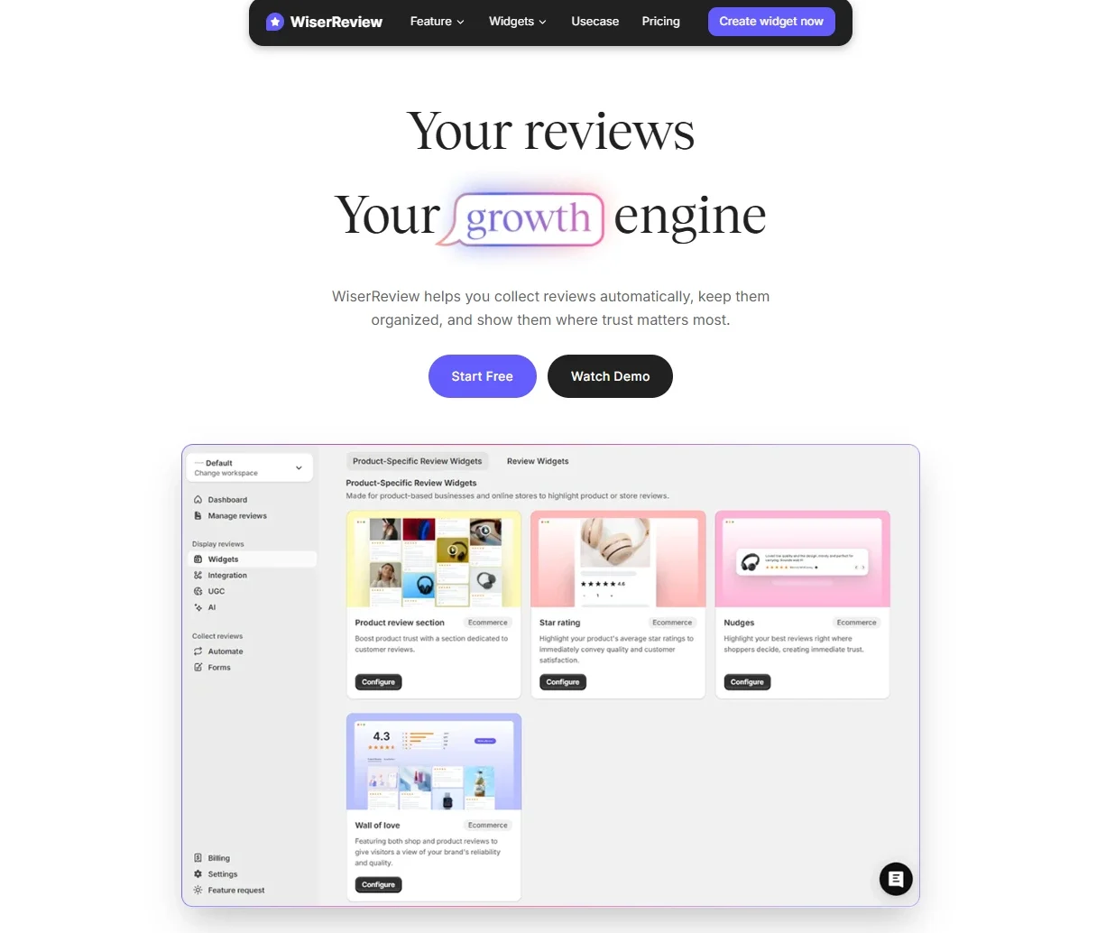 WiserReviews helps you collect and manage all types of reviews with full design control.