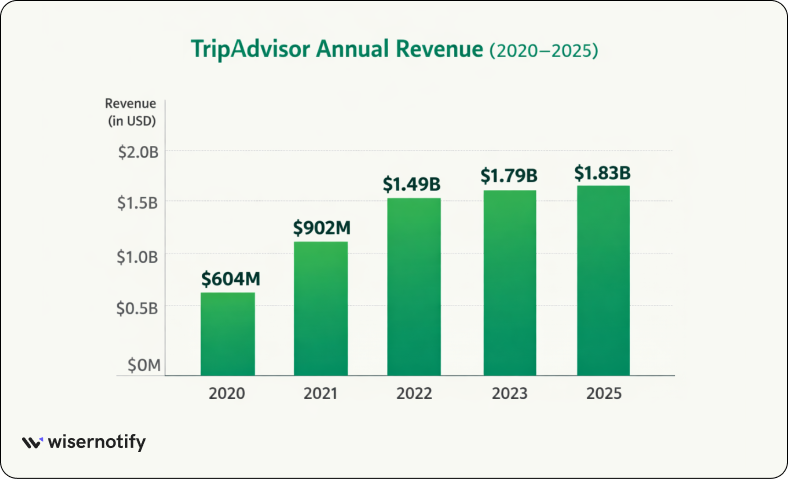TripAdvisor generated about $1.83 billion in revenue in 2024. Most of the company’s revenue comes from advertising, travel bookings, and experience marketplaces like Viator.