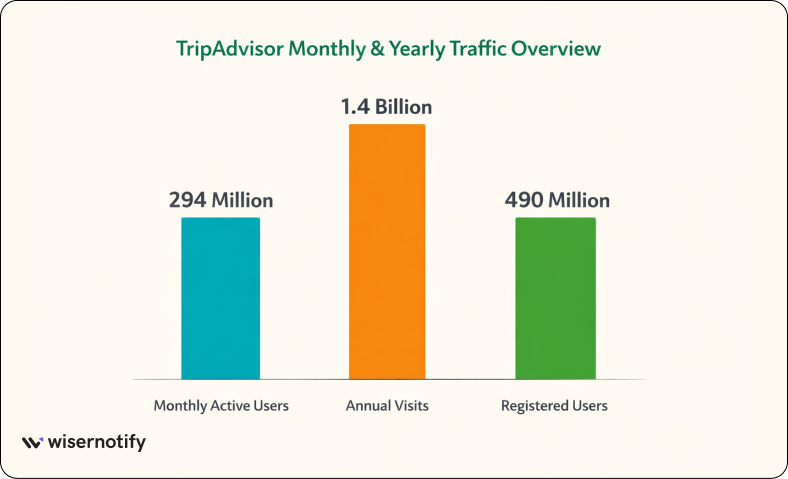 Around 294 million travelers visit TripAdvisor every month to research destinations, read reviews, and compare hotels, restaurants, and attractions before making booking decisions.