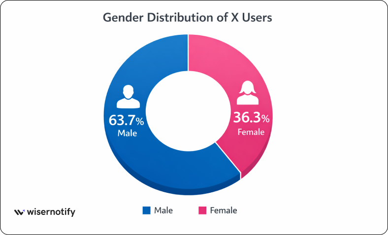 5. Around 63.7% of X users are male, while about 36.3% are female.