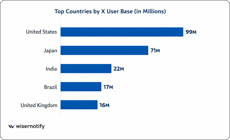 X has a global audience with users spread across many countries and regions. Some markets have a much larger user base due to higher internet usage, strong media presence, and active online communities.