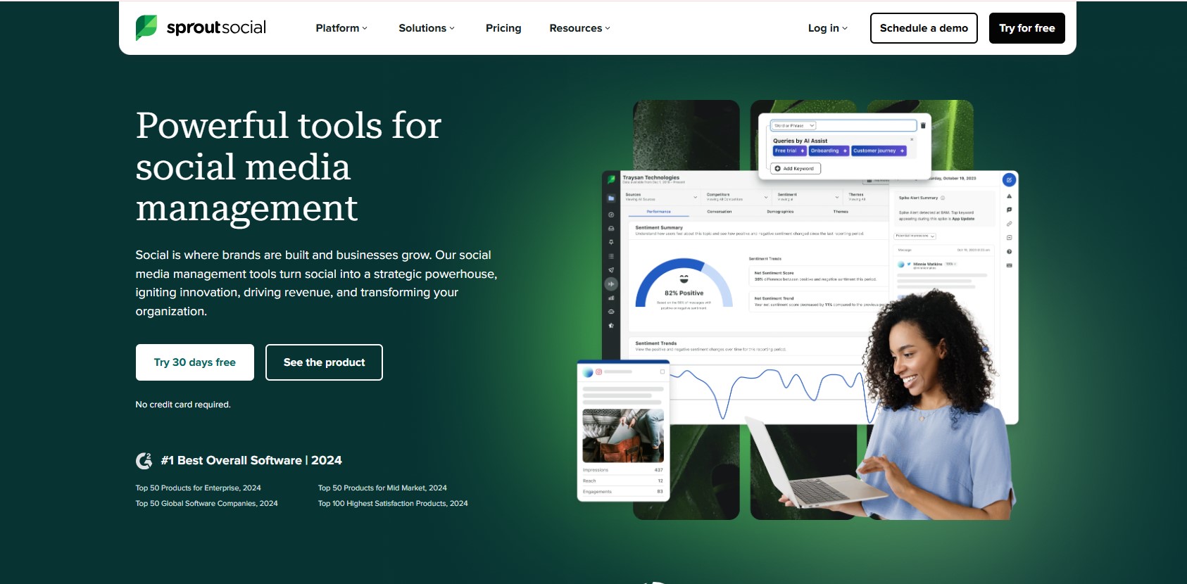 If your strategy focuses on social media content, Sprout helps you find customer posts, curate the best ones, and measure their impact on brand awareness and engagement.