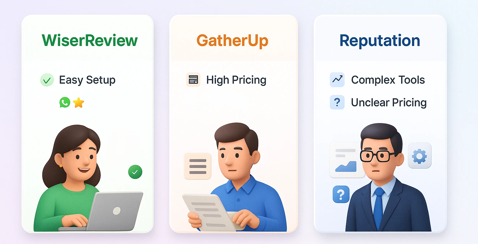 WiserReview vs GatherUp vs Reputation (2025 Comparison)