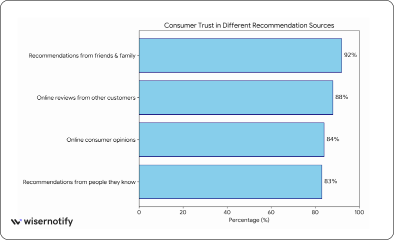 92% of consumers trust word-of-mouth recommendations from friends and family more than any other form of marketing.