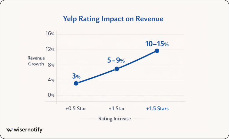 A 1-star increase in Yelp ratings can increase business revenue by 5% to 9%.