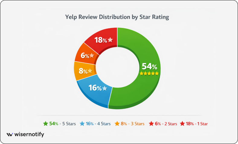 12. Around 53%–54% of Yelp reviews are 5-star ratings, showing strong customer satisfaction.