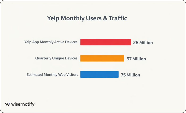 This growth shows that Yelp remains one of the largest review platforms for local search and business discovery.