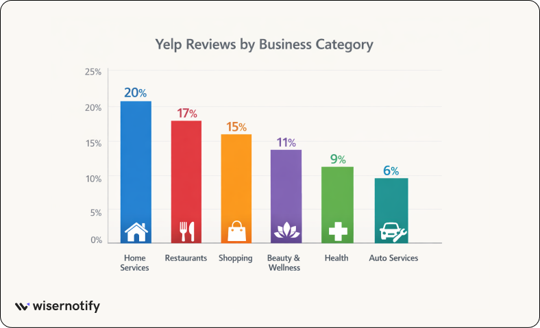 24. Home service businesses generate around 20% of Yelp reviews, making them the largest category on the platform.