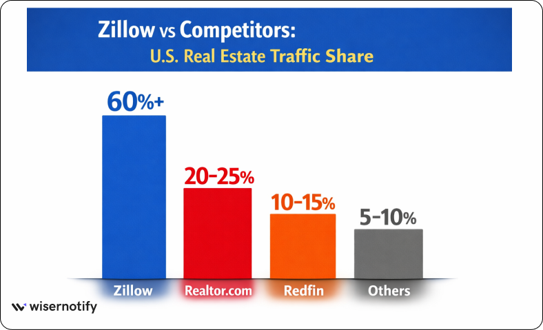 13. Zillow holds over 60% of the traffic share among top real estate websites in the U.S.