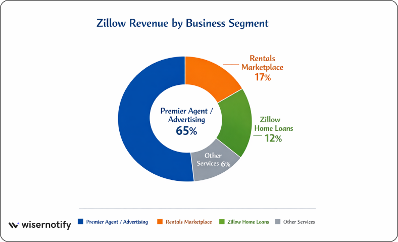 Zillow generates most of its revenue from its Premier Agent network and marketplace services.
